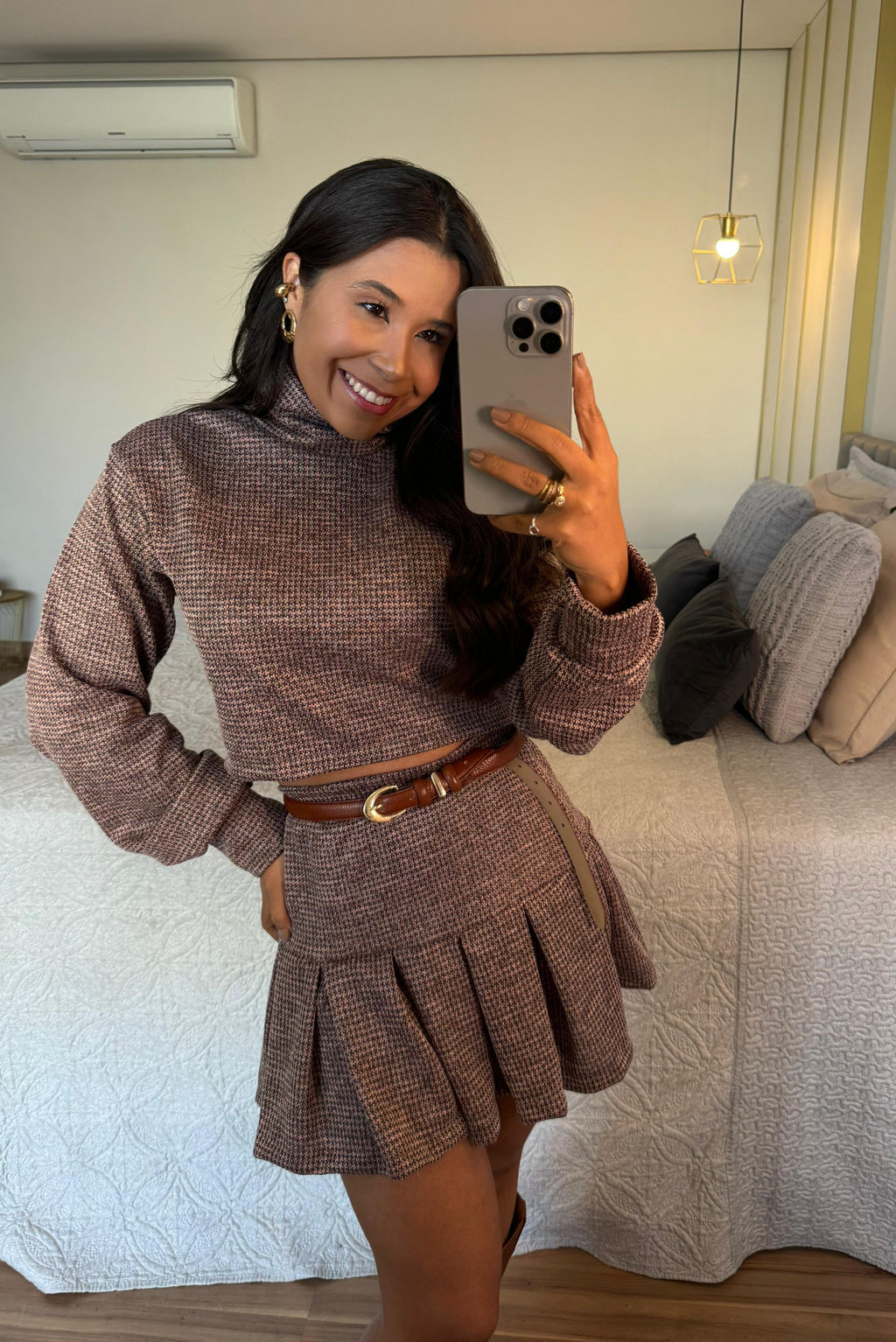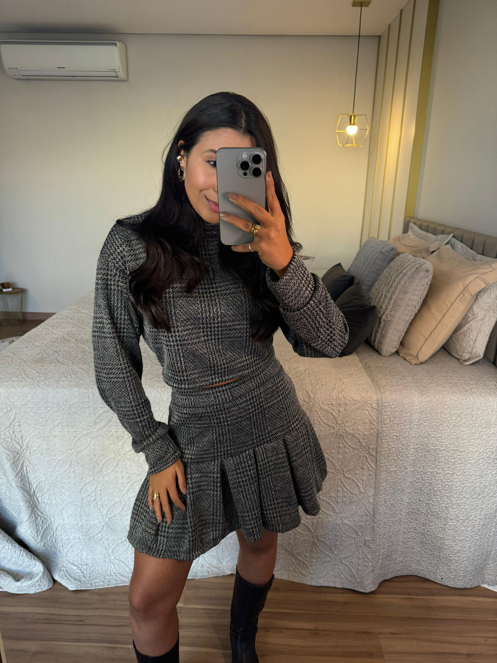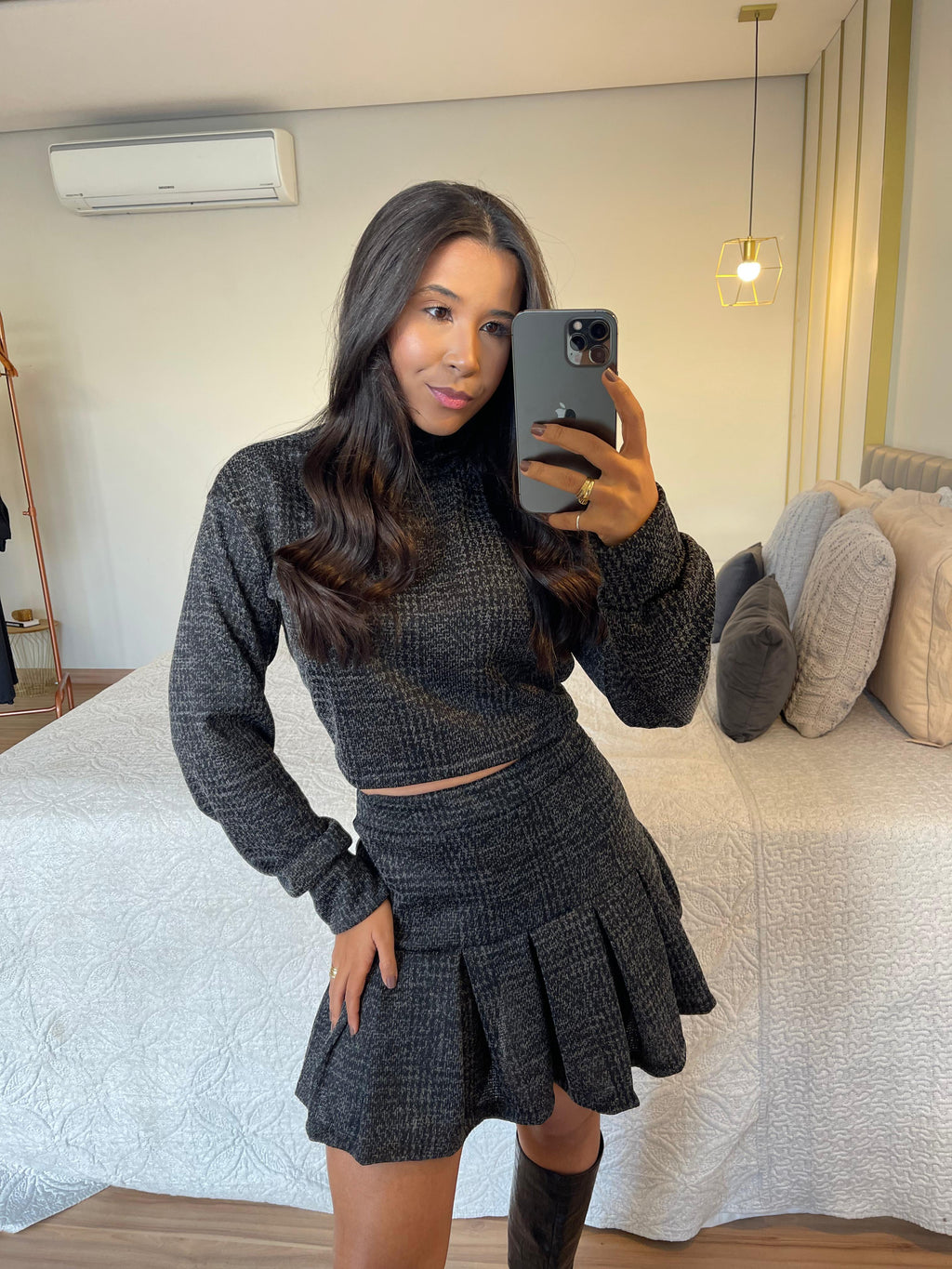 Se vista com elegância nos dias frios com este incrível conjunto de saia e blusa de frio, pensado para mulheres que amam unir conforto térmico com um visual marcante e feminino.