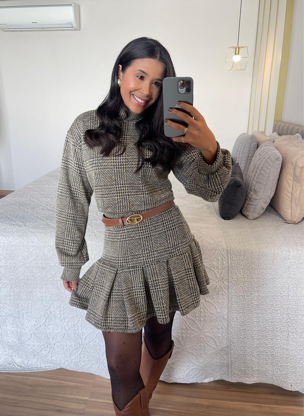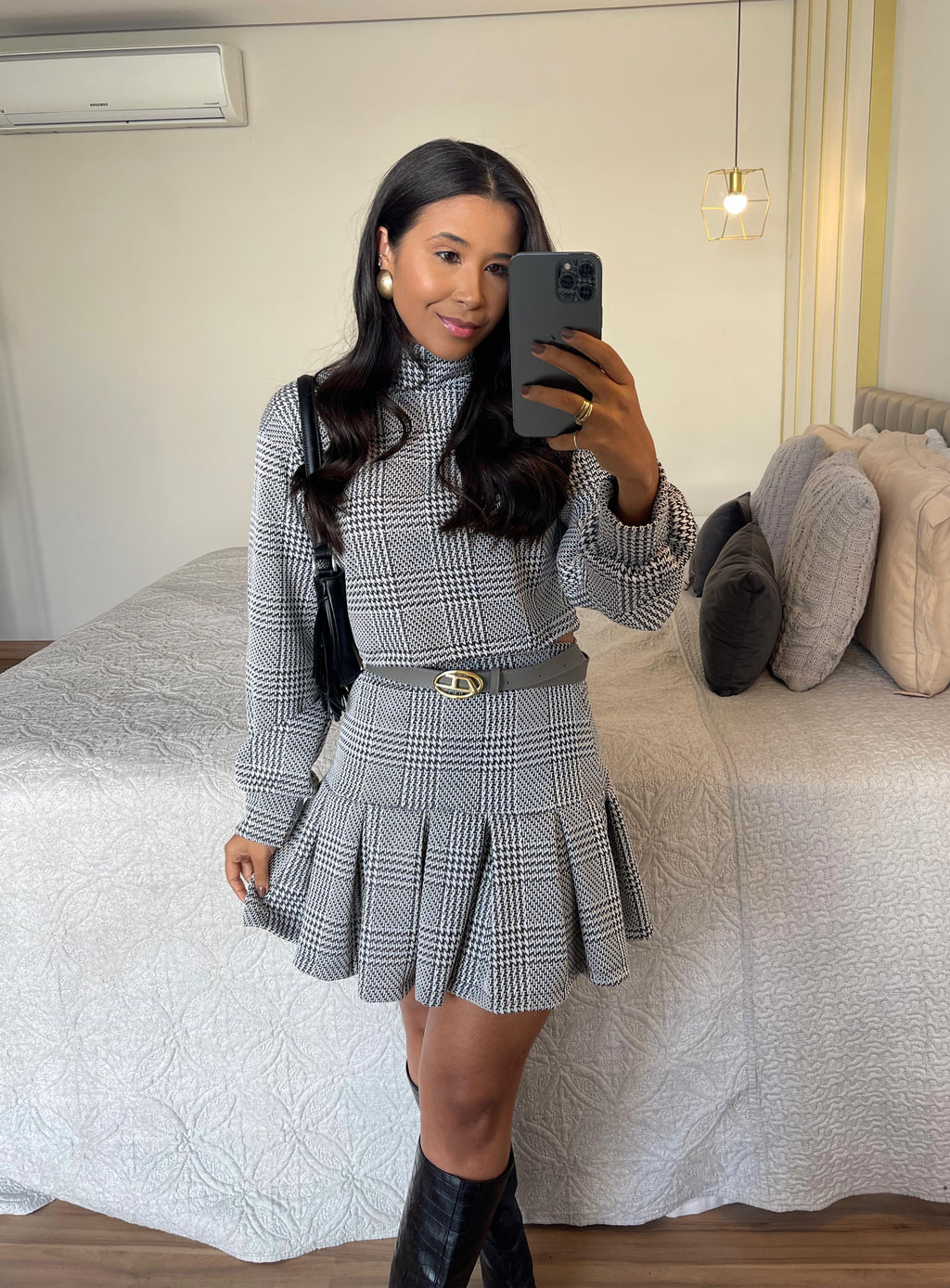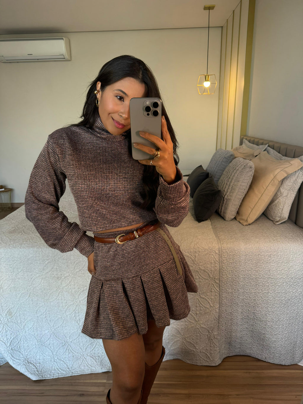 Se vista com elegância nos dias frios com este incrível conjunto de saia e blusa de frio, pensado para mulheres que amam unir conforto térmico com um visual marcante e feminino.
