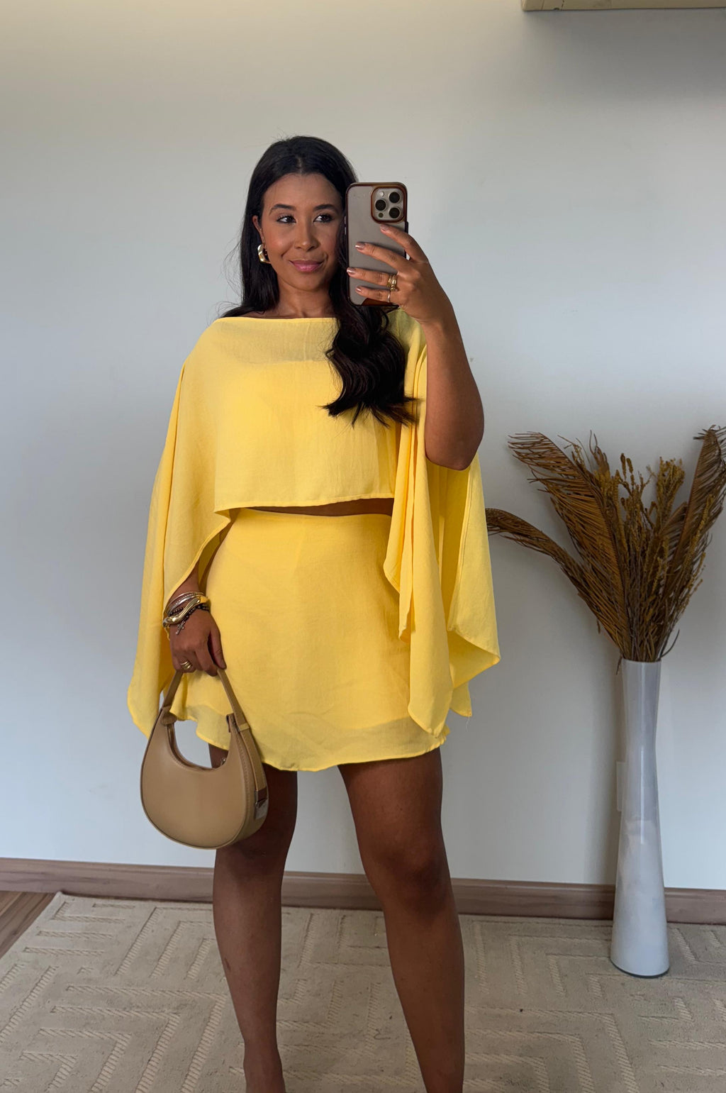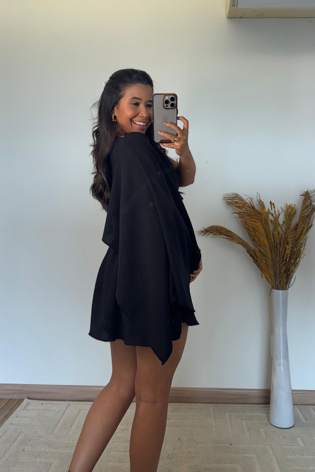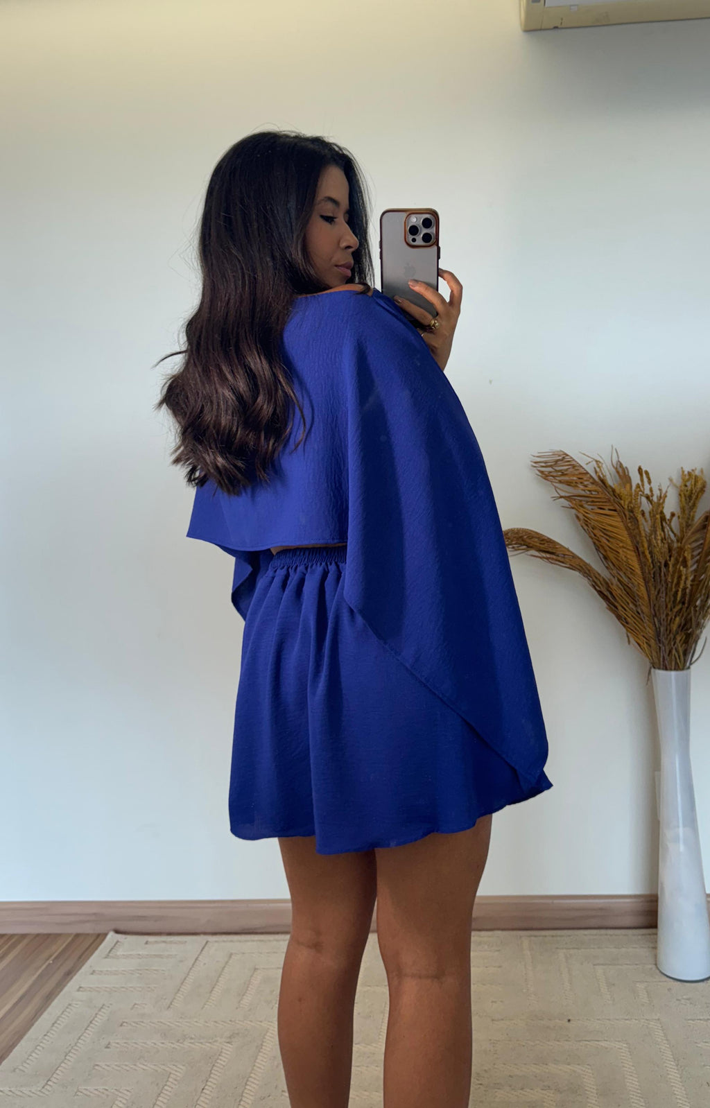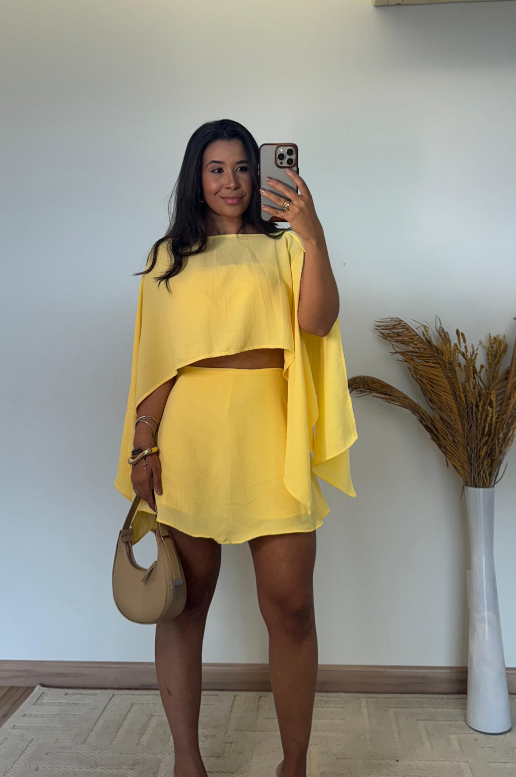 Composto por 3 peças — top, short e sobreposição — o conjunto cria um visual harmonioso e romântico, com camadas que conferem charme e fluidez ao look. A sobreposição esvoaçante em chiffon adiciona um efeito leve e moderno, enquanto o top estruturado e o short garantem conforto, segurança e liberdade para aproveitar o dia inteiro.