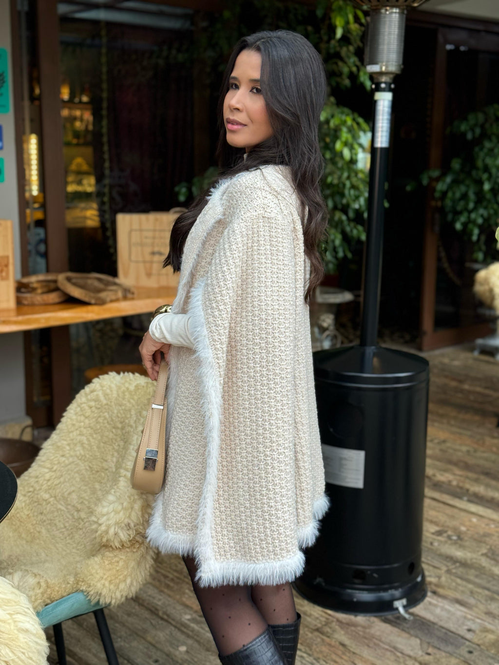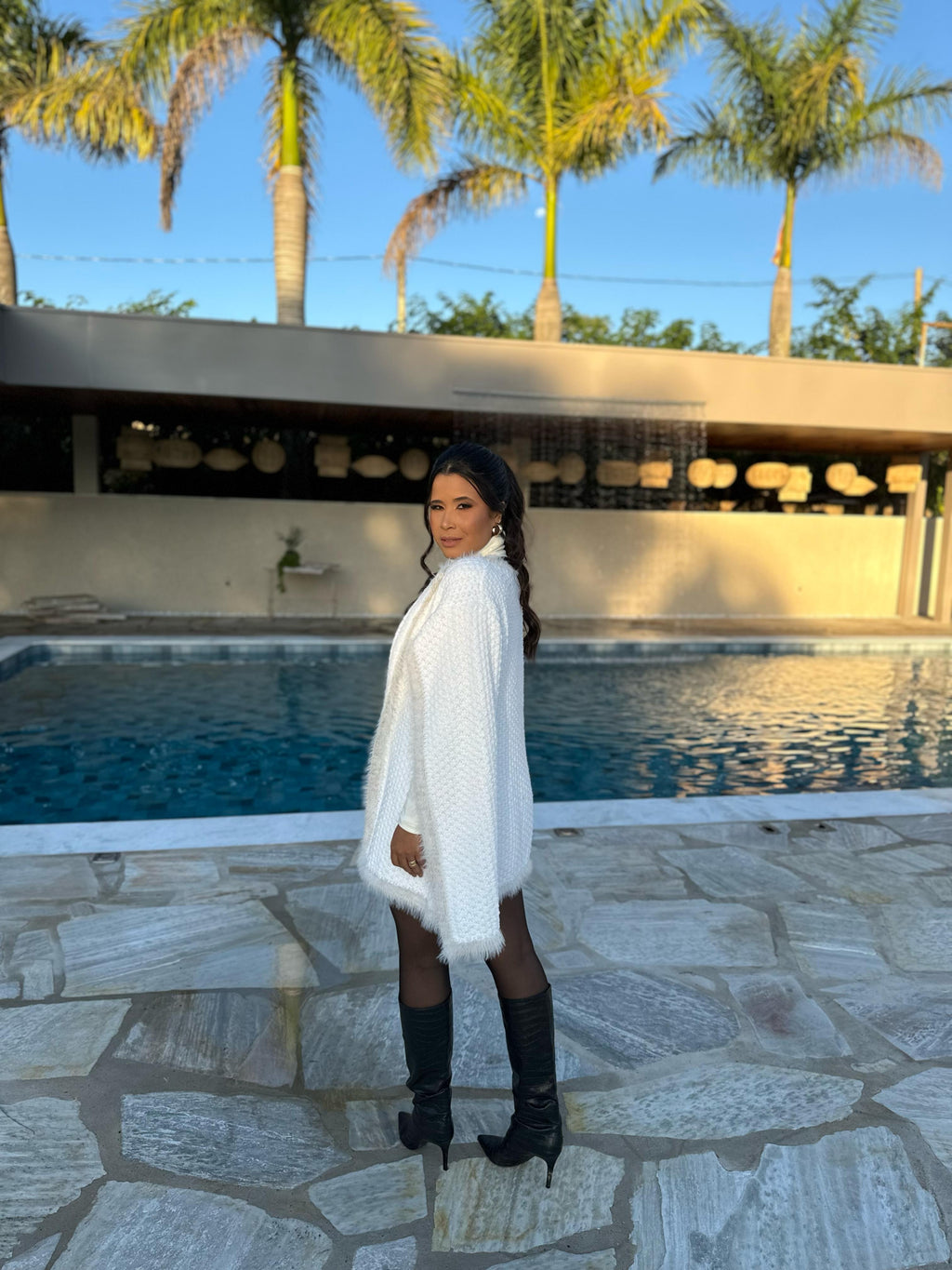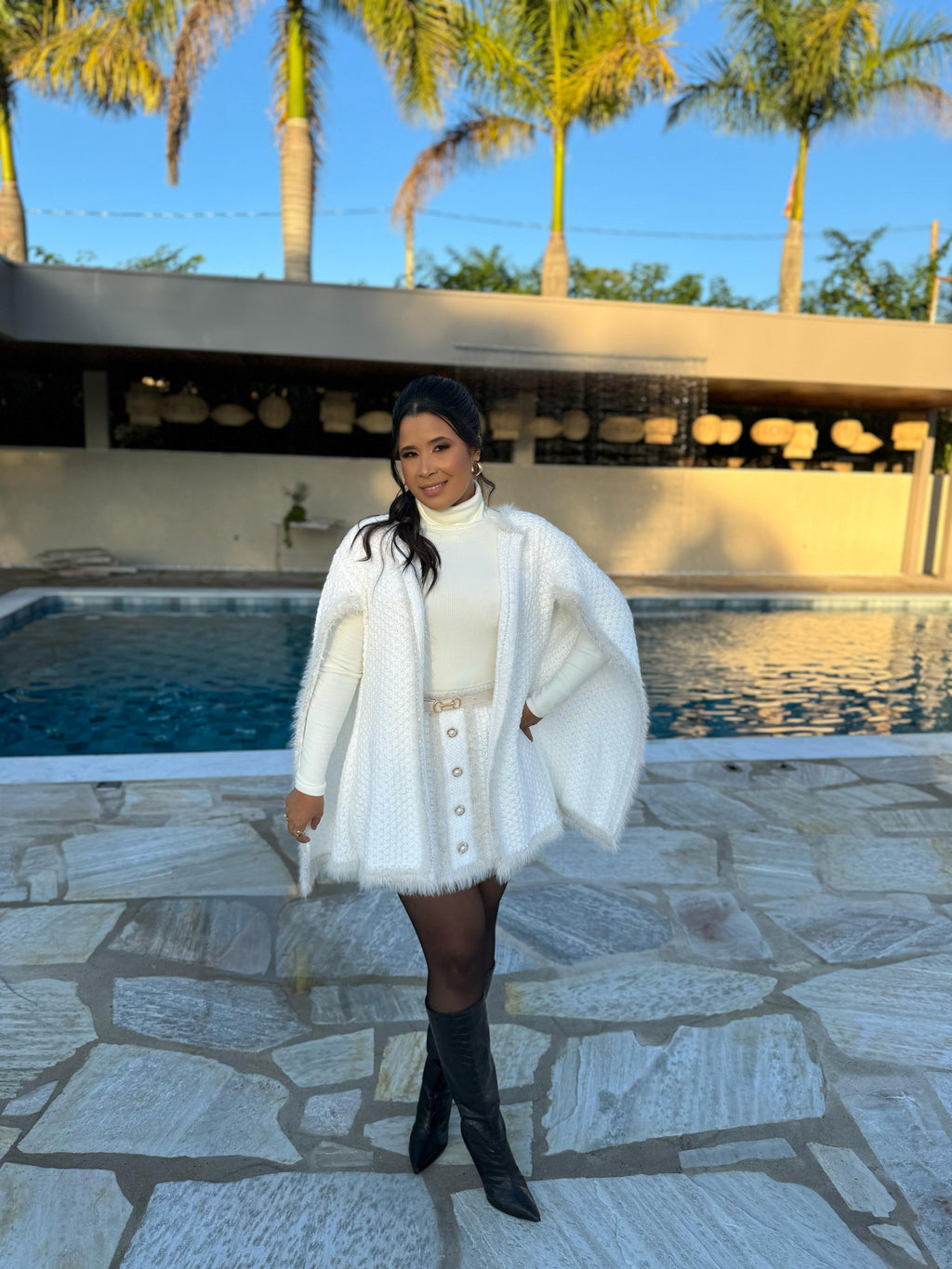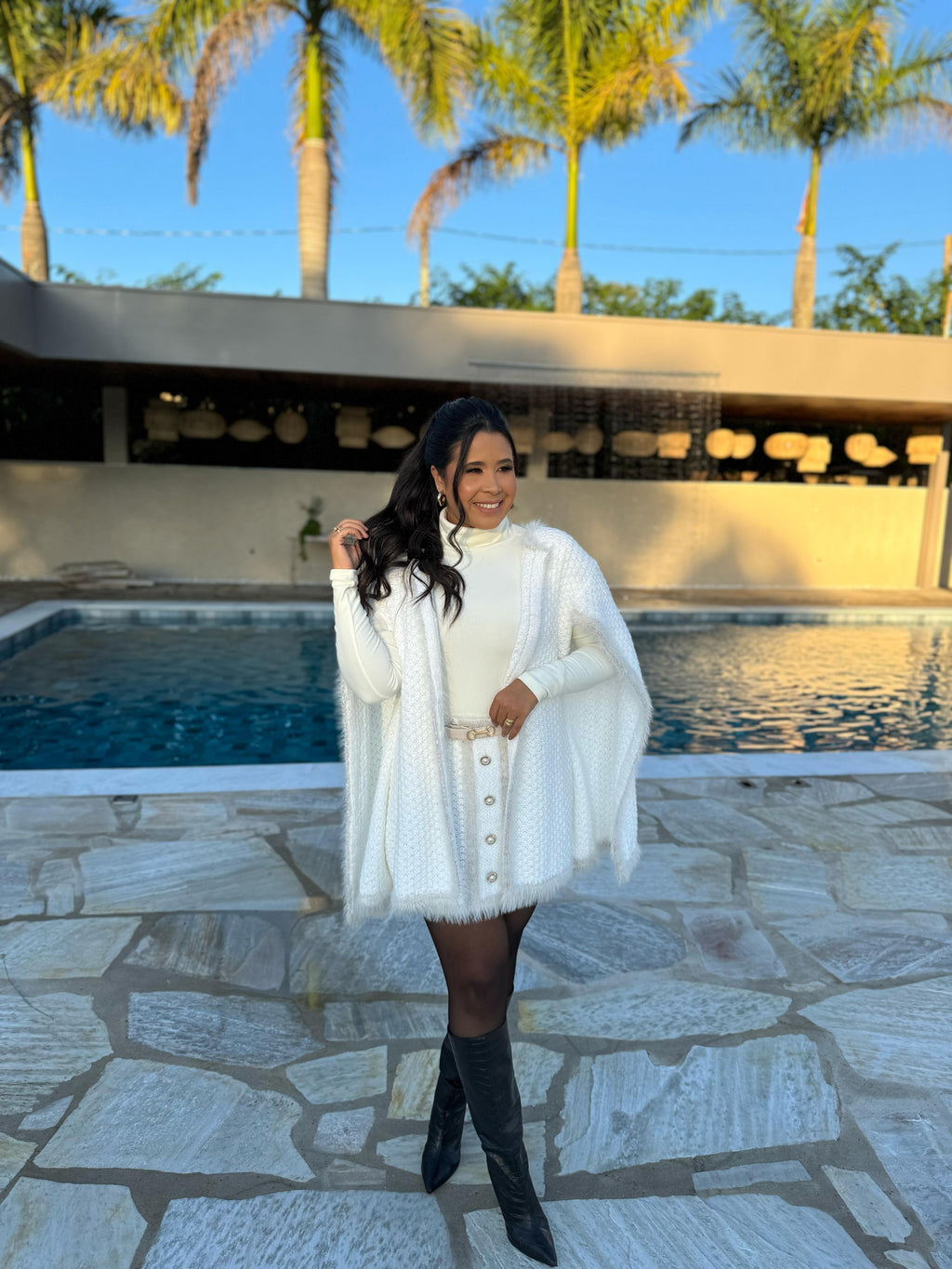 - - Design- Casaco tipo capa e saia em tecido tricot com acabamento, que proporciona charme e aconchego.