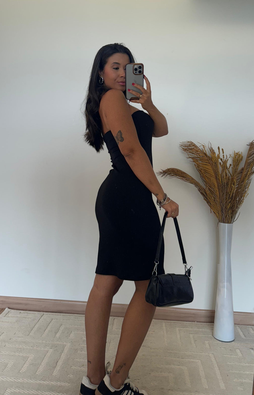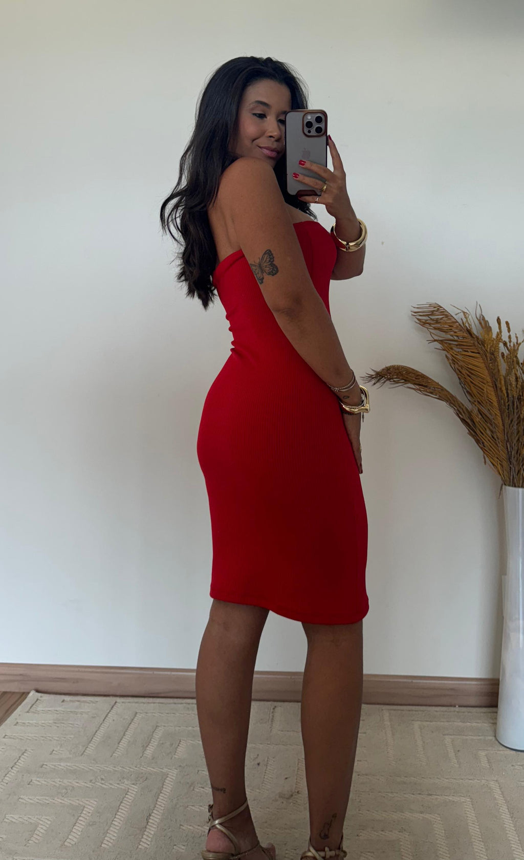 Seu modelo tomara que caia realça colo e ombros com sutileza, criando uma silhueta sofisticada e extremamente feminina. A modelagem veste do 36 ao 42, mas possui forma pequena, proporcionando um caimento ajustado que abraça o corpo na medida certa.