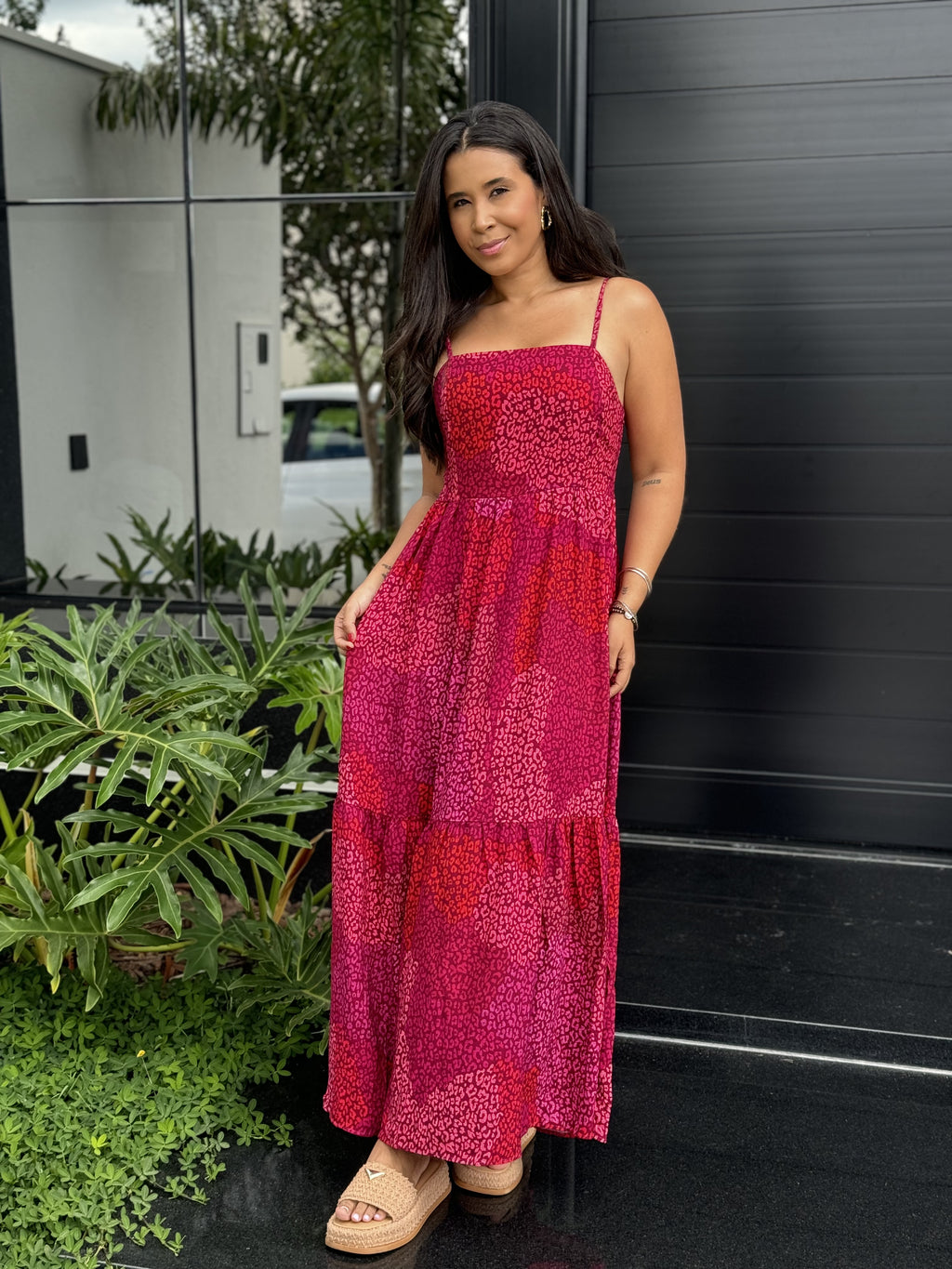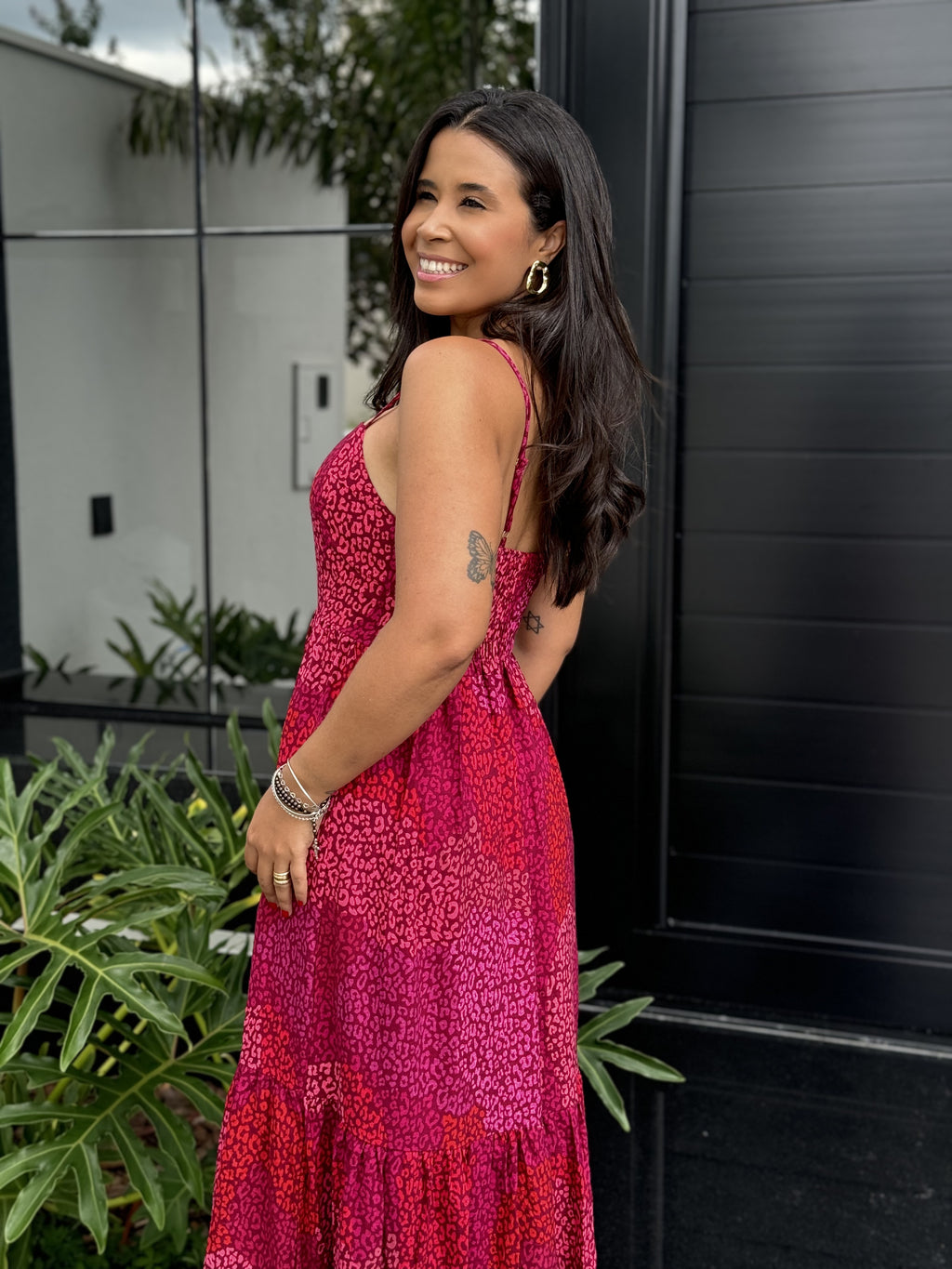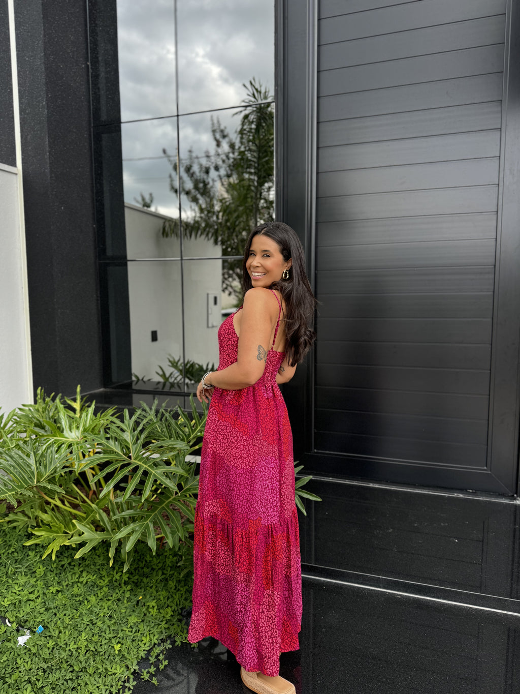 Com lastex nas costas, o modelo garante ajuste perfeito ao corpo, valorizando a silhueta com muito conforto. As alças finas e o decote reto trazem delicadeza, enquanto a estampa pink em animal print adiciona um toque moderno e ousado.