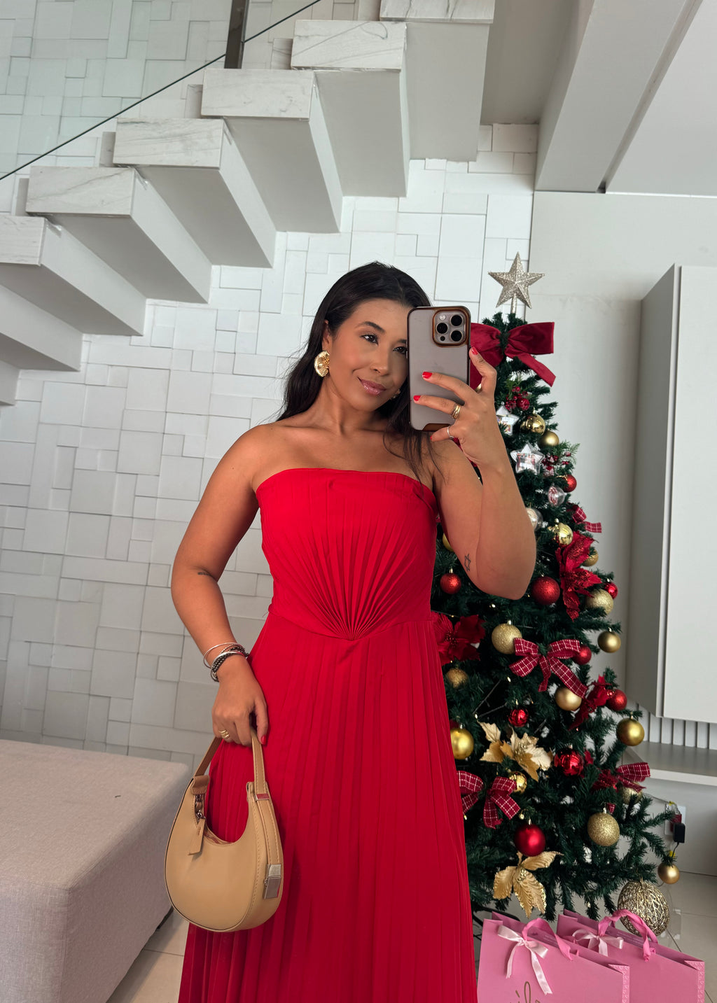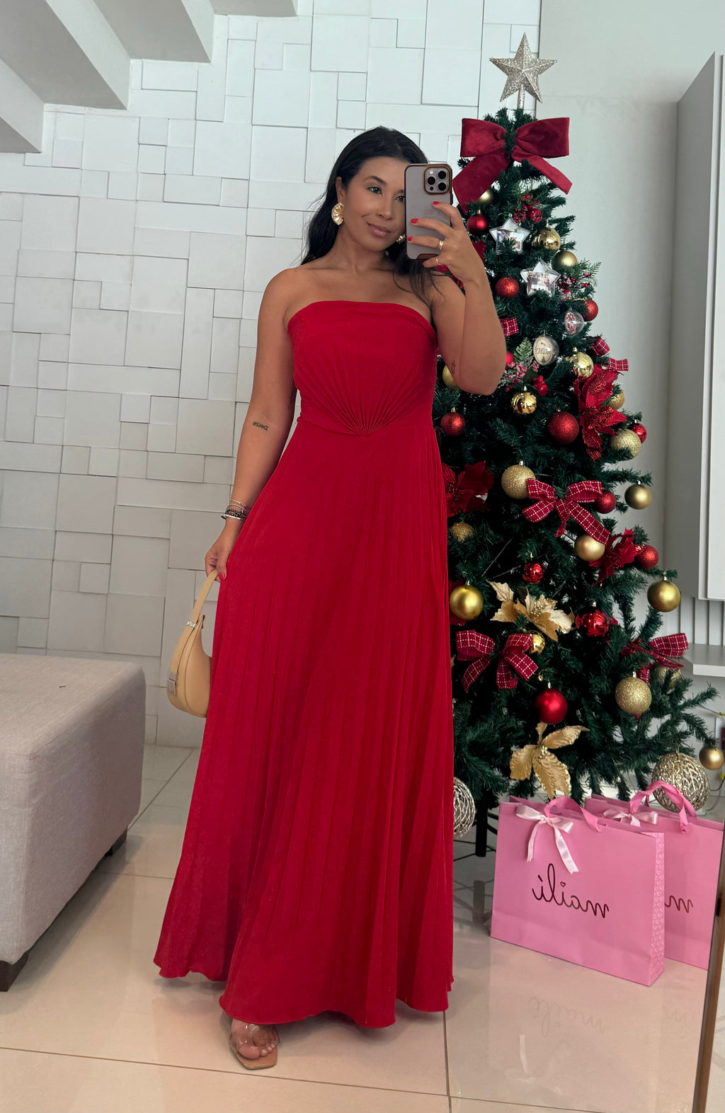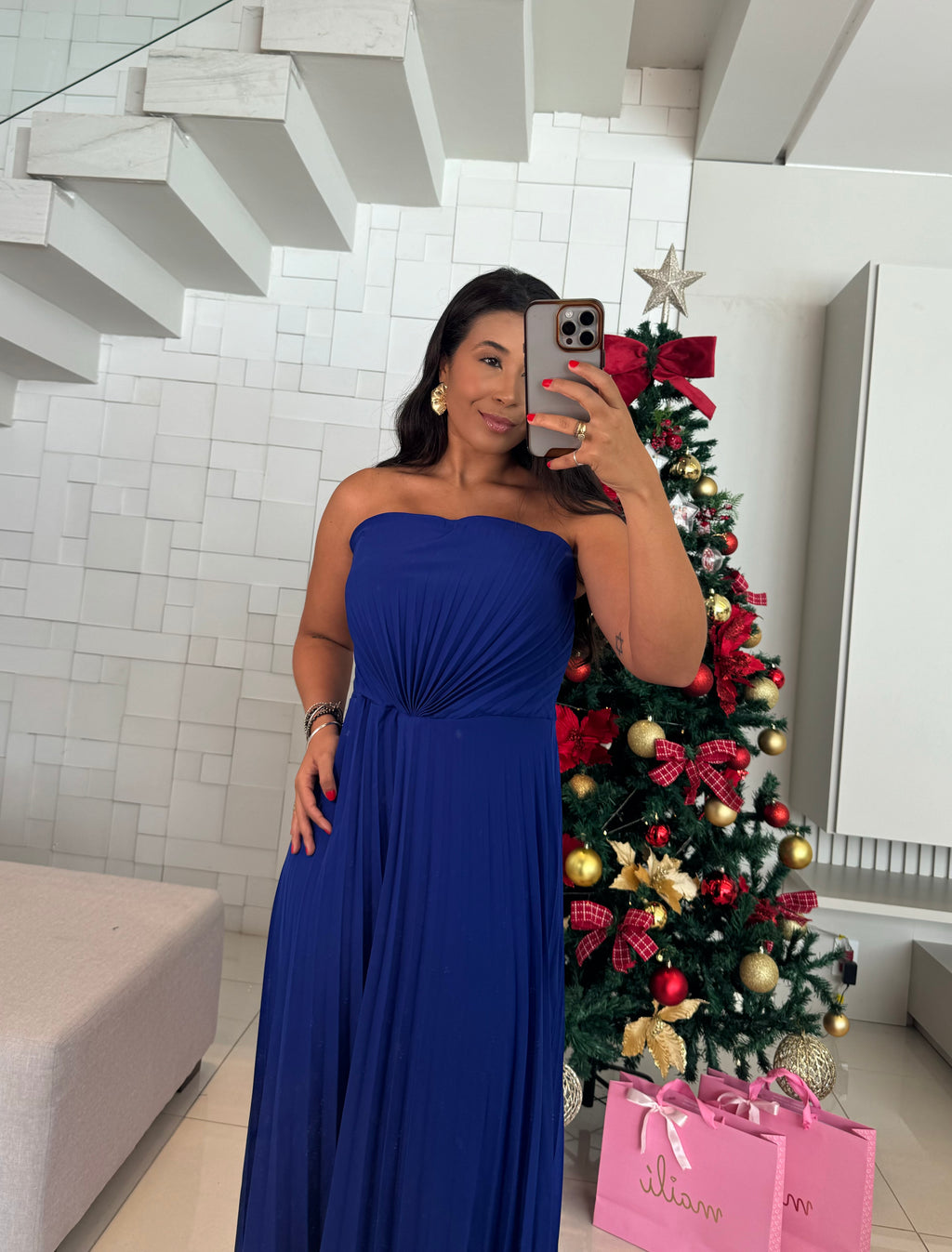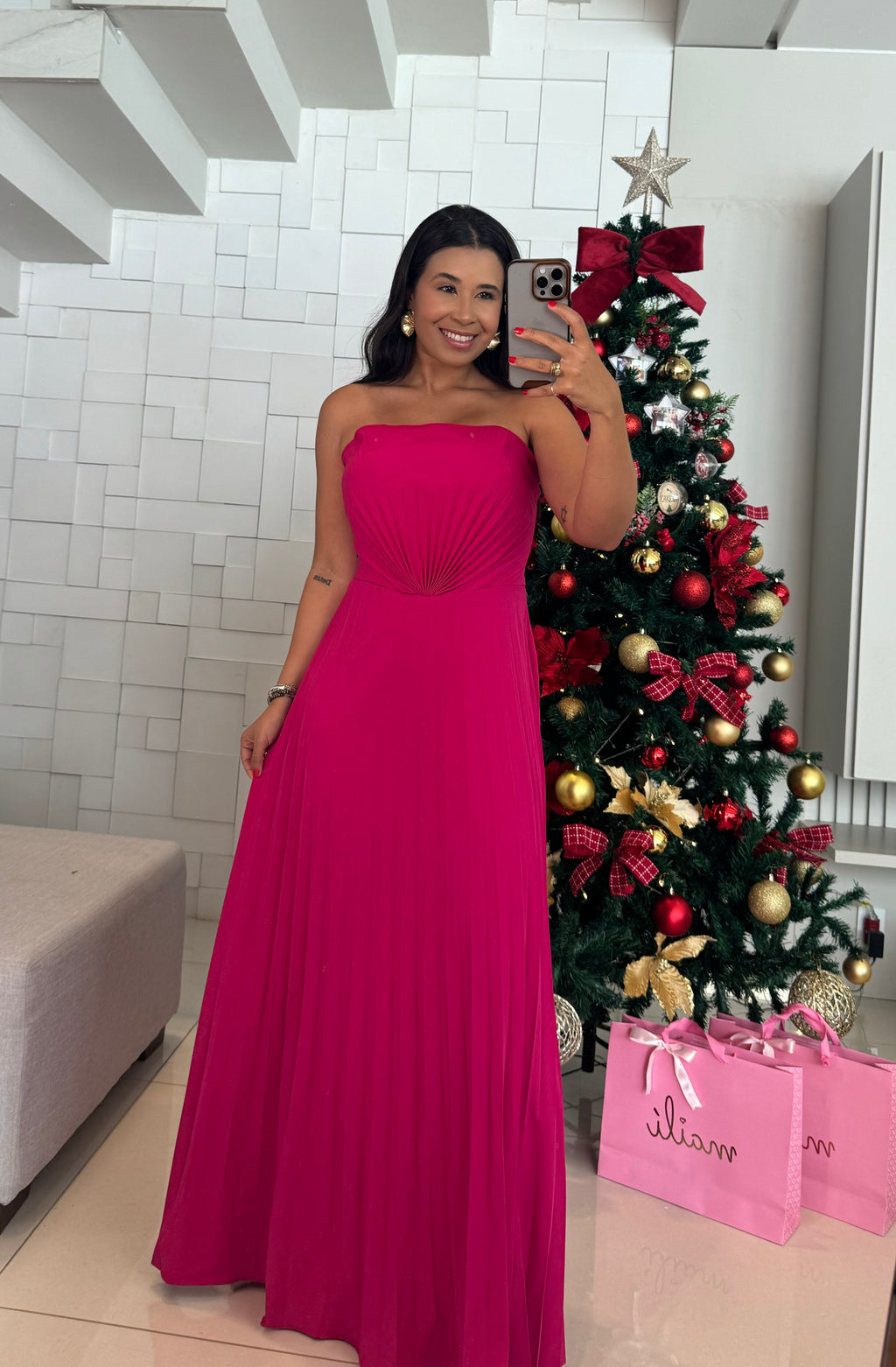 Com modelagem tomara que caia, valoriza o colo e os ombros, realçando a feminilidade de forma moderna e delicada.