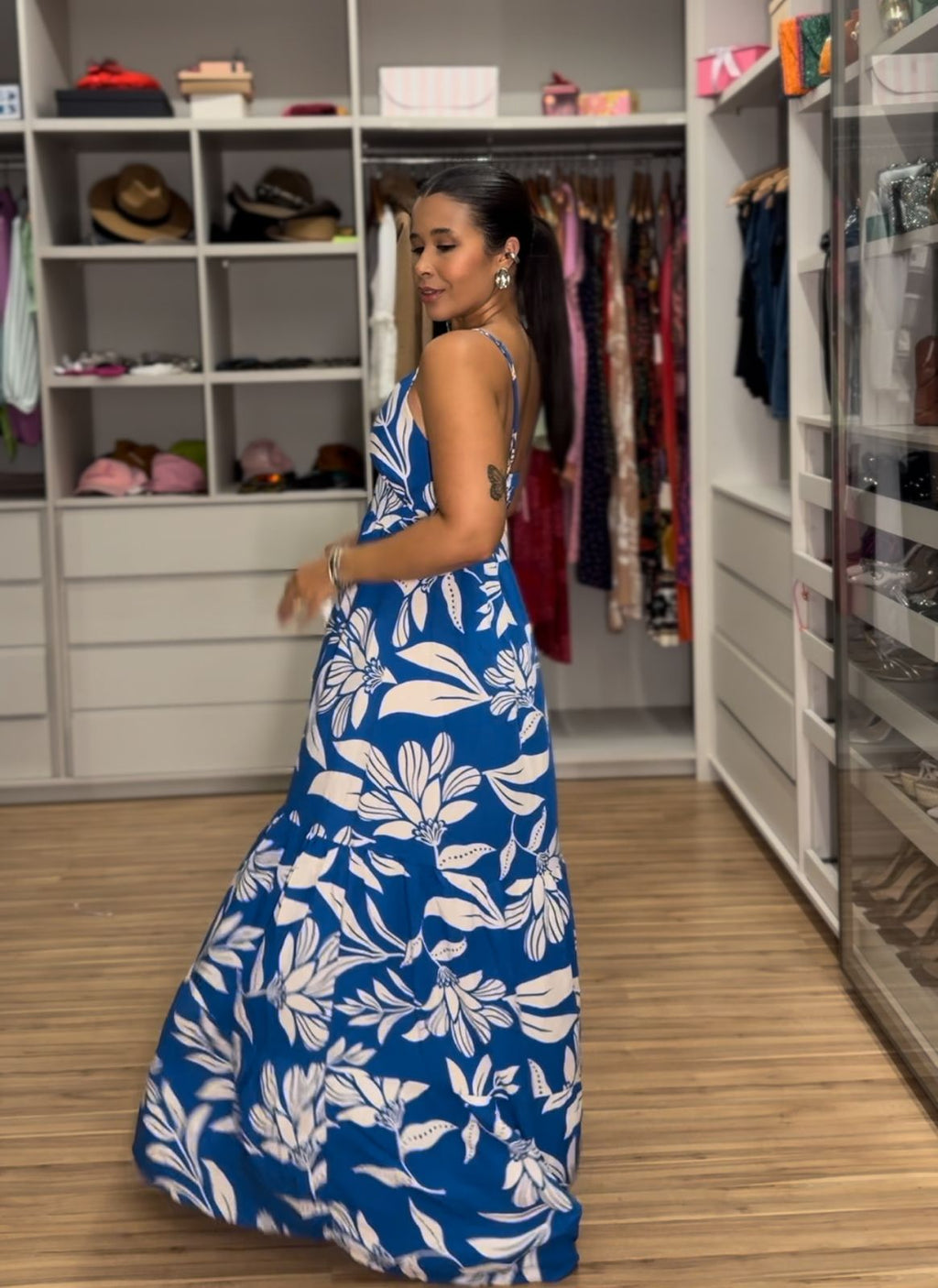A cor do vestido pode variar de acordo com a iluminação natural ou a tela de dispositivos como celular e computador.